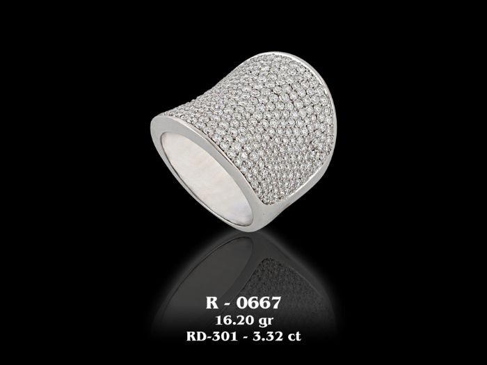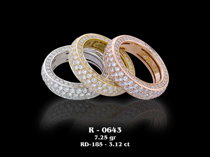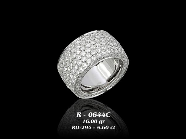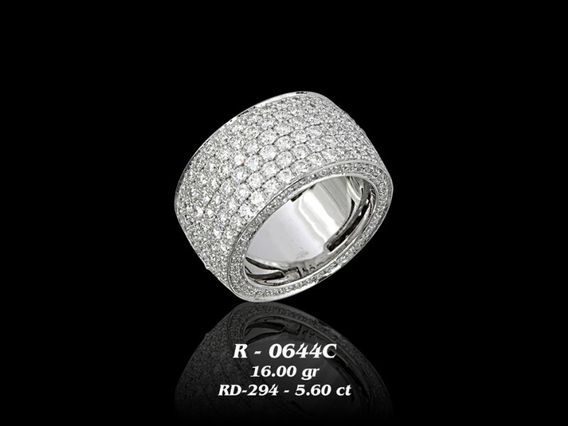 טבעת יפיפיה עבה משובצת לכל אורכה יהלומים.